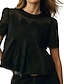 Mujer Camiseta Camiseta superior Encaje Retazos Con Texturas Plano Moda Elegante Clásico Manga Corta Escote en Pico Tops largos Casual Diario Noche Negro Blanco Amarillo Azul cielo Morado Verano