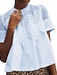 Mujer Blusa Encaje Ojal Botones Color sólido Elegante Básico Casual Manga Corta Escote en Pico Tops regulares Diario Azul Piscina Negro Blanco Verde Claro Rosa Verano Primavera