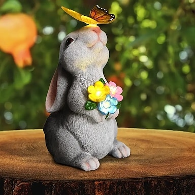 gato solar al aire libre &Luces decorativas de conejito, lámparas de resina impermeables, iluminación de jardín, patio, caminos, decoración de Pascua, luces decorativas para césped, decoración de