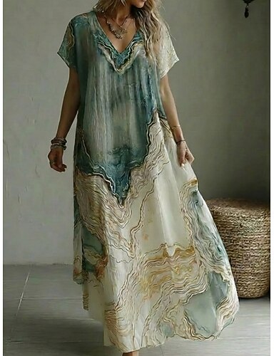 Mujer Vestido maxi Vestido informal Vestido Estampado Elegante Moda Moderno Exterior Vacaciones Noche Holgado Impresión de mármol Manga Corta Escote en Pico Azul Piscina Verano Primavera