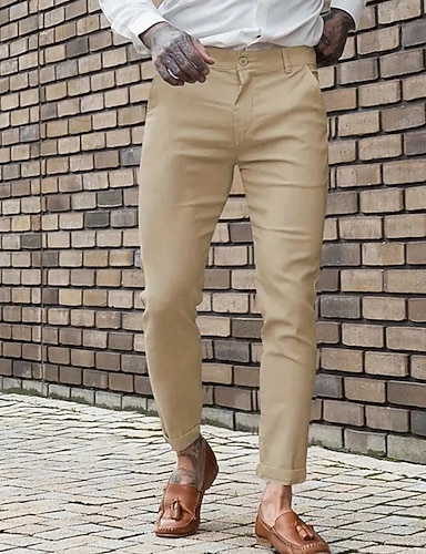 Hombre pantalones de traje Ajustado Pantalones Chinos Botones Bolsillo Plano Comodidad Formal Fiesta Trabajo Moda Estilo clásico Azul Piscina Caqui Microelástico