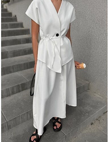 Mujer Conjuntos de dos piezas conjuntos de falda Manga Corta Escote en Pico Plano Elegante Moda Ropa de calle Casual Diario Exterior Blanco Verano Ajuste regular
