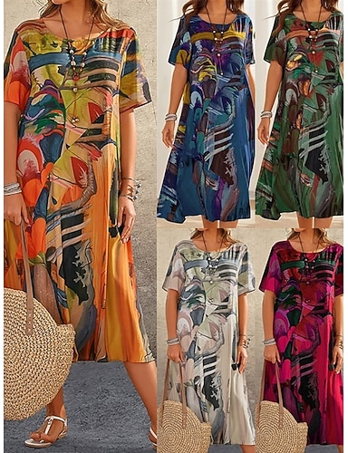 Mujer Vestido Midi Vestido bohemio Vestido vintage Vestido informal Elegante Moda Moderno Playa Vacaciones Noche Ajuste regular Graphic Manga Corta Cuello Barco Azul Piscina Amarillo Rojo Verde Trébol