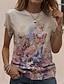 Mujer Camiseta Estampado Graphic Animal Vintage Elegante Clásico Manga Corta Cuello Barco Escote Redondo Tops regulares Diario Fin de semana Rosa Marrón Arco Iris Verano Primavera