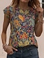 Mujer Camiseta Estampado Floral Graphic Cachemir Bohemia Vintage Elegante Manga Corta Cuello Barco Tops regulares Diario Noche Fin de semana Azul Piscina Negro Morado Naranja Verde Trébol Verano