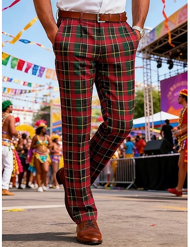 Hombre Pantalones pantalones de traje Chinos Plaid Longitud total Casual Negocio Carnaval Moda Elegante Rojo