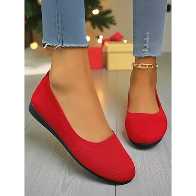 Bailarinas rojas sin cordones de punto Flyknit para mujer: cómodas y elegantes, perfectas para las fiestas navideñas, salidas informales y compras navideñas.