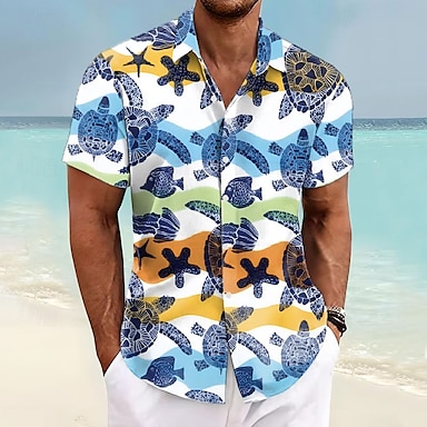 Hombre Tropical tortugas Camisa camisa hawaiana Manga Corta Camisa Cuello Vuelto Vacaciones Hawaiano Exterior Vacaciones Hawaiano Azul Naranja Verde Trébol S M L