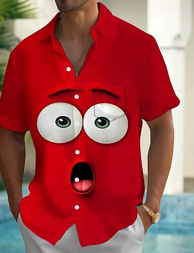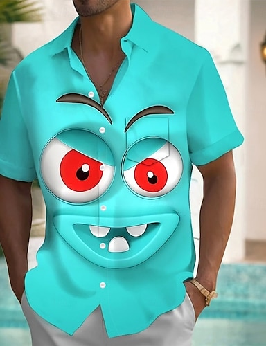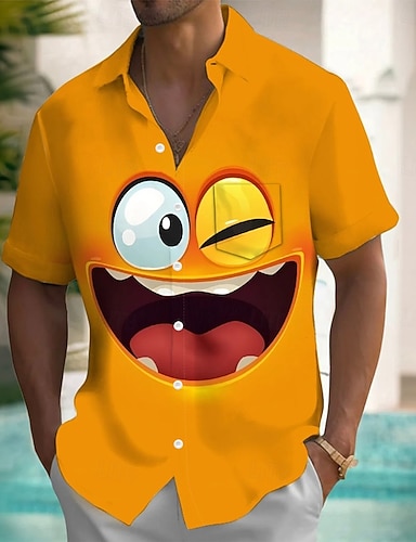 Hombre Caricatura Gracioso Cara de la sonrisa Camisa Camisa de verano Abotonar la camisa Manga Corta Moda informal Exterior Vacaciones Uso Diario Verano Primavera Cuello Vuelto Impresión 3D camisas