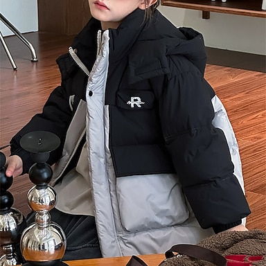 Niños Chica Chaqueta de plumas Chaqueta acolchada Bloque de color Deportes Bolsillo Mantiene abrigado Paravientos: Exterior Abrigo Ropa de calle 4-12 años Invierno Negro Gris