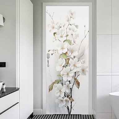 Tapiz de pared con diseño de flores de cerezo, estilo lavado de tinta, ramas de árbol, para puerta, decoración minimalista zen para el hogar, baño, dormitorio, entrada, cubierta de puerta interior y