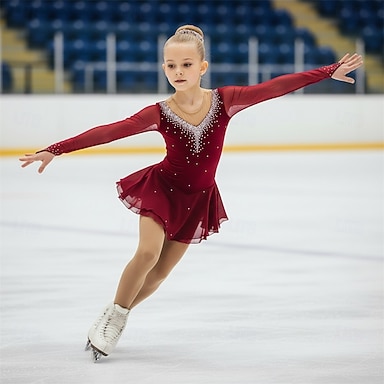 Vestido de patinaje artístico Mujer Chica Patinaje Sobre Hielo Vestidos Accesorios Violeta Borgoña Azul Real Flor Retazos Licra Elástico Entrenamiento Competición Ropa de Patinaje Hecho a mano