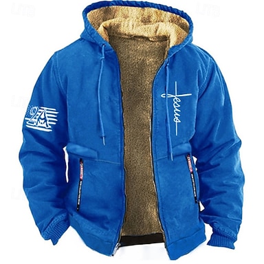 Hombre Sudadera con capucha y cremallera completa Chaqueta de lana Sudadera con capucha de lana Negro Marrón Con Capucha Cruz Bandera estadounidense Bolsillo Estampado Casual Diario Noche Poliéster