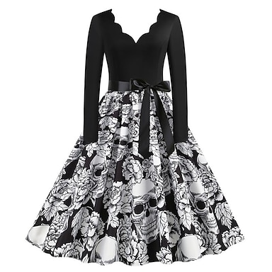 Retro Antiguo 1950s Vestidos Baile de Máscaras Vestido acampanado Cráneos Disfraz Mujer Víspera de Todos los Santos Carnaval Mascarada Víspera de Todos los Santos Fiesta / Noche Despedida de Soltera