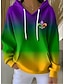 Mujer Sudadera con capucha Pullover Graphic A Rayas Casual Manga Larga Con Capucha Tops regulares Casual Uso Diario Deportes Morado Verde Trébol Primavera Otoño