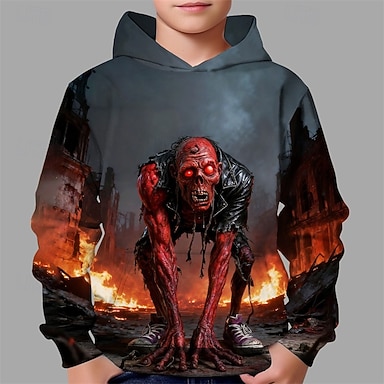 Víspera de Todos los Santos Chico 3D Cráneos Sudadera Manga Larga Primavera Otoño Moda Ropa de calle Niños 4-12 años Con Capucha Exterior Casual Diario Ajuste regular