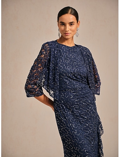Mujer Camisa de encaje Lentejuelas Encaje Elegante Manga 3/4 Escote en Pico Fiesta de Noche Invitado a la boda Azul Marino Verano Primavera Otoño Invierno