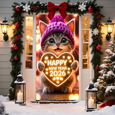 Año Nuevo tapiz Carteles Cubierta de la puerta Feliz año nuevo 2026 Estilo lindo 3D Fiesta Residencia universitaria Habitación de adolescentes Dormitorio de fraternidad de Guys Man Cave Fondos de