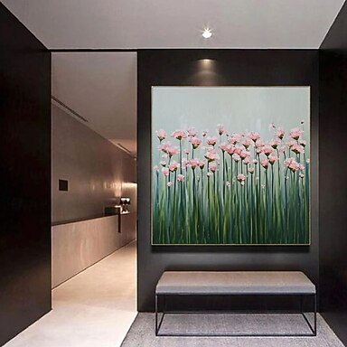 Hermoso paisaje floral, pintura al óleo sobre lienzo, moderno, flores pintadas a mano, arte de pared, espátula extragrande, arte para decoración del hogar