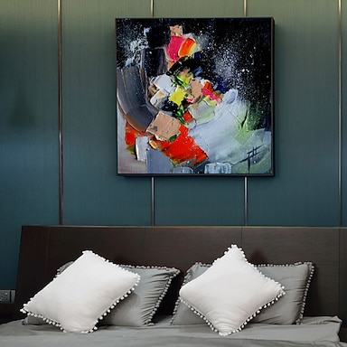 Hecho a mano Pintura al óleo pintada a colgar Pintada a mano Cuadrado Abstracto Personas Moderno Sin marco interior (sin marco)