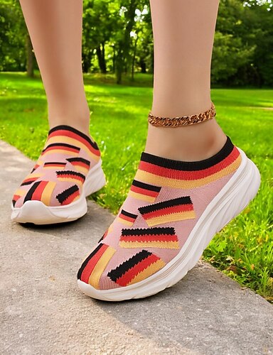 Zapatillas deportivas de punto transpirables rosas para mujer: calzado ligero para caminar, estilo sin cordones para ocasiones informales y viajes. &uso diario