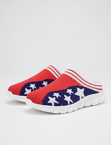 Sandalias de mujer con tira ajustable y bandera estadounidense en rojo y azul: sandalias de playa ligeras para vacaciones, festivales y uso diario informal.