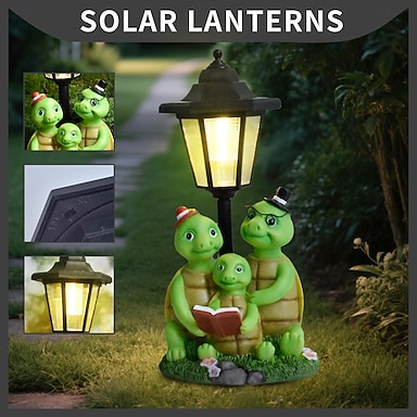1 figura de resina con 3 tortugas de lectura, solar, impermeable, para exteriores, decoración de jardín, patio, camino, estatua de animal, iluminación de paisaje de granja, luz decorativa de acento