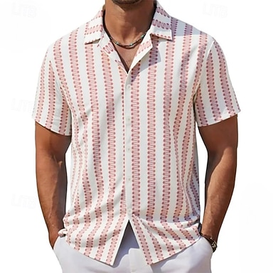 Hombre Camisa Camisa casual Abotonar la camisa Negro Rojo Color Caquí Manga Corta A Rayas Collar Cubano Casual Diario Encaje Ropa Elegante Moda Casual