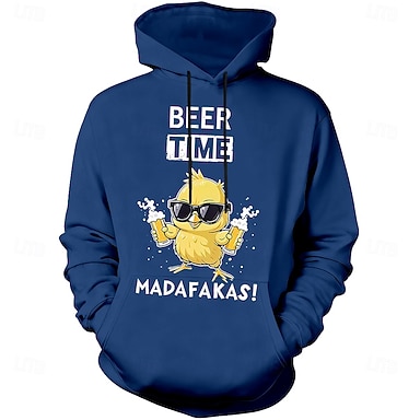 Sudadera con capucha gráfica para hombres - Hora de cerveza Madafakas divertida impresión de gallina sudadera con capucha de manga larga