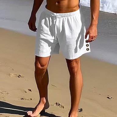 Hombre Pantalón corto Pantalones cortos de lino Pantalones cortos de verano Pantalones cortos de playa Correa Cintura elástica Botón lateral Plano Comodidad Transpirable Longitud de la rodilla