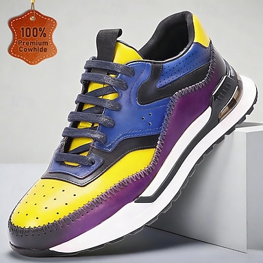 Zapatillas deportivas de piel auténtica con bloques de color para hombre: estilo urbano moderno, ropa informal, zapatillas para actividades al aire libre y para el día a día.
