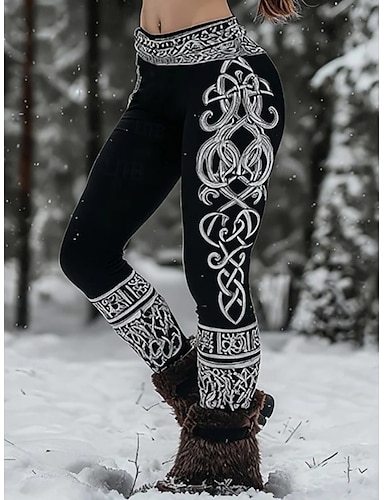 Mallas Boho Vikingas para Mujeres Estilo Étnico Vintage Largo Completo Cintura Alta Gráfico Abstracto Impresión 3D Secado Rápido Transpirabilidad Suave Elástico Formal Exterior Vacaciones Marrón