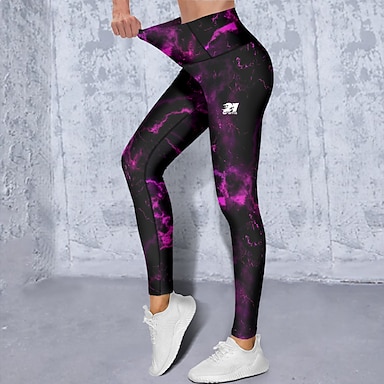 Mujer Pantalones de yoga Levantamiento de tope Control de barriga Alta cintura Entrenamiento de gimnasio Corriendo Aptitud física Calzas Cortas Tie-dye Negro Otoño Invierno Deportes Ropa de Deporte