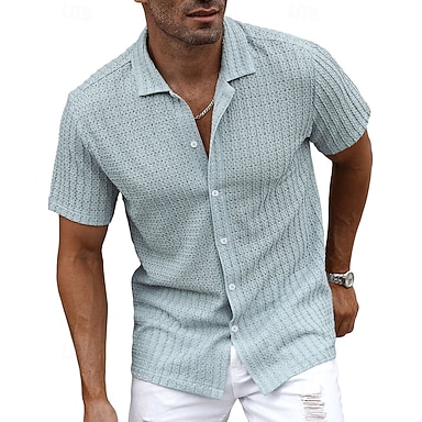 Hombre Camisa Textura Camisa casual Abotonar la camisa Azul Piscina Verde Trébol Gris Manga Corta Plano Cuello Camisero Casual Diario Jacquard Ropa Elegante Moda Casual