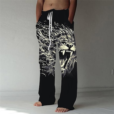 Hombre Pantalones Pantalones de verano Pantalones de playa Diseño de cordón elástico Bolsillo delantero Pierna recta Animal León Estampados Comodidad Suave Casual Diario Moda Design Negro Verde Trébol