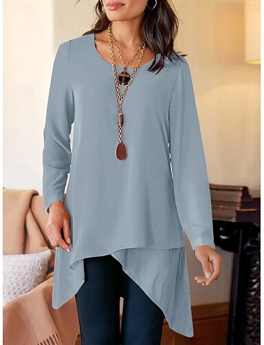 Mujer Blusa Botones Color sólido Elegante Casual Manga Larga Cuello Barco Tops regulares Diario Azul Piscina Negro Verde Ejército Rojo Gris Primavera Otoño Invierno