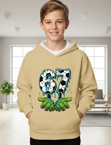 Unisexo 3D Graphic Fútbol Americano Sudadera Pullover Manga Larga Impresión 3D Primavera Otoño Deportes Moda Ropa de calle Niños 4-12 años Con Capucha Casual Diario Exterior Ajuste regular