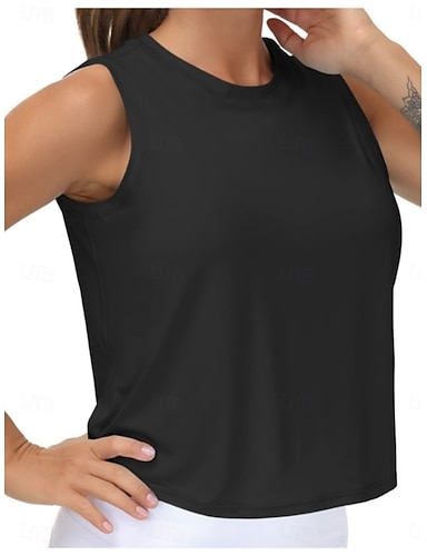 Mujer Blusa Plano Activo Vintage Sin Mangas Cuello Barco Tops regulares Diario Gimnasia Festivos Negro Blanco Rosa Azul Marino Gris Oscuro Verano Primavera