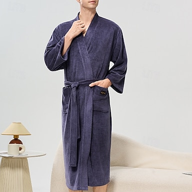 Hombre Pijamas Pijama bata de baño Plano Moda Elegante Clásico Hogar Diario Cama Franela Poliéster Mantiene abrigado Comodidad Suave Escote en Pico Manga Larga Otoño Invierno Negro Blanco