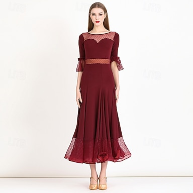 Baile de Salón Vestido Color Puro Corte Mujer Fiesta Entrenamiento Rendimiento Manga 3/4 Cristal algodón Malla