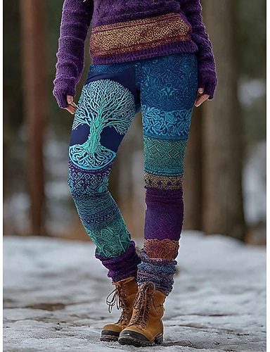 Mujeres Vikingas Boho Leggings Vacaciones Estilo Étnico Vintage de Largo Completo Cintura Alta Gráfico Árbol Abstracto Secado Rápido Transpirabilidad Suave Elástico Formal Aire Libre Vacaciones Azul