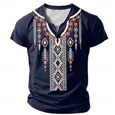 Hombre Tribal Camiseta Manga Corta Impresión 3D Vacaciones Moda Étnico Casual Verano Primavera Azul Oscuro Henley Camiseta Henley