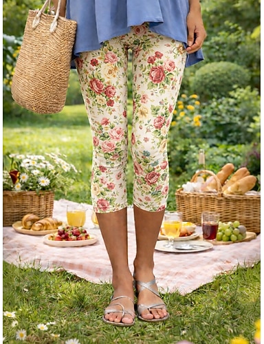 Mujeres Pantalones Leggings Capri Impresión 3D Alta Elasticidad Vacaciones Moda Vintage Largo Hasta la Pantorrilla Cintura Alta Impresión Floral Gráfica Transpirable Suave Elástico Formal Vacaciones