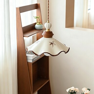 Lámpara de araña de cerámica moderna blanca retro, lámpara de techo de cerámica plisada esmaltada para isla de cocina, lámpara colgante de comedor de estilo japonés con cable ajustable, casquillo E27.