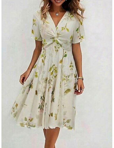 Mujer Vestido hasta la Rodilla Vestido bohemio Vestido de Camisa Vestido informal Vestido de flores Elegante Moda Moderno Exterior Vacaciones Noche Ajuste regular Floral Manga Corta Escote en Pico