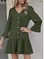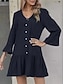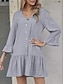 Mujer Mini vestido Lino de algodón sintético Vestido de cambio Vestido informal Moda Básico Moderno Manga de la llamarada Diario Exterior Vacaciones Ajuste regular Holgado Plano Manga Larga Escote en