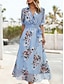 Mujer Vestido maxi Vestido informal Vestido de una línea Vestido de flores Elegante Moda Moderno Exterior Vacaciones Noche Ajuste regular Floral Manga Corta Escote en Pico Azul Piscina Verano