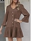 Mujer Vestido Midi Lino de algodón sintético Vestido Kaftan Vestido Fruncido Moda Moderno Diario Exterior Vacaciones Holgado Plano Manga Larga Escote en Pico Marrón Verano Primavera