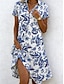 Mujer Vestido hasta la Rodilla Vestido informal Vestido de flores Vestido Estampado Moda Clásico Moderno Exterior Vacaciones Noche Ajuste regular Floral Manga Corta Cuello Camisero Azul Piscina