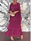 Mujer Vestido hasta la Rodilla Vestidos de lino y algodón Vestido de cambio Vestido informal Elegante Moda Moderno Diario Exterior Vacaciones Holgado Plano Manga 3/4 Cuello Barco Azul Piscina Rosa